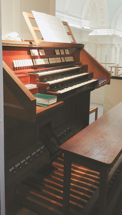 D5A first organ was built at the end of the 19thcentury by the Abbey workshop of Versailles for the Church of Notre‑Damedel’Assomption in Passy, Paris. When the church was enlarged around1952, the original organ was purchased by the parish of Sainte‑Bernadette in Brignogan (Finistère), where it still resides today. More info…The current organ of Notre‑DamedePassy has undergone several transformations and has changed hands at least three times.It was built by CharlesMutin at the very beginning of the 20thcentury. We know nothing about the instrument’s first owner—presumably a wealthy private organ enthusiast or a small community.In1928 the organ was bought by Count Léoncede Saint‑Martin, titular organist of Notre‑DamedeParis, for his apartment on Place des Vosges. Gutschenritter re‑voiced the instrument and took the opportunity to make a few modifications and additions to Mutin’s organ, including a third keyboard that carries no stops but serves as a coupler manual, thereby giving the organist more possibilities. At that time the instrument had 19 stops.Canon Boulard, pastor of the Church of Notre‑Damedel’Assomption, had carried out expansion work on the church in the 1950s and was looking to replace the modest organ that occupied the second gallery at the back of the nave. Around that time EmmanueldeVillèle, then the church’s titular organist, learned that LéoncedeSaint‑Martin’s organ was for sale. He promptly informed Canon Boulard, who acquired it.The instrument was re‑voiced by Beuchet‑Debierre. Major enlargement and electrification work were undertaken to adapt the organ to the church’s dimensions and to increase its musical possibilities. The essentially romantic organ was transformed into a neoclassical instrument, in line with the prevailing style of the era. The overall re‑voicing was entrusted to the harmonist JacquesPicaud, a Parisian collaborator of the Beuchet firm.