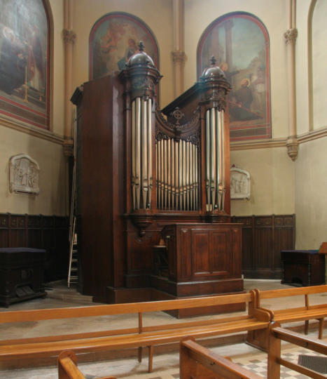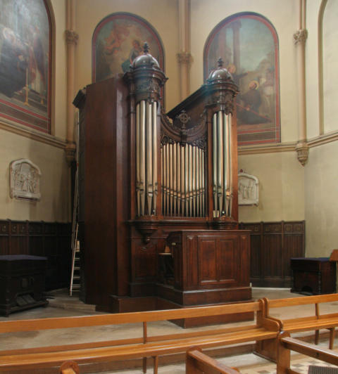 C1The choir organ was built by Merklin in 1898. It remained close to its original state (apart from the rear base which was enlarged in the 1970s).In 2001, it was restored by Yves Fossaert.